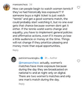 Osaka’s coach later addressed many of the counterarguments, reaffirming his stance from the Instagram clip. He noted that tournaments often prioritize economics over gender equality and argued that scheduling two three-set matches featuring women at night could run too late to be practical.